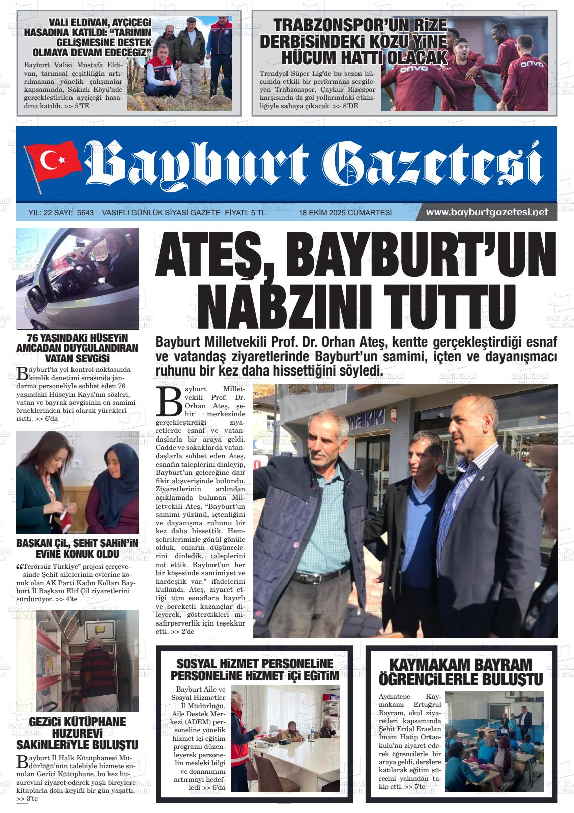 Bayburt Yerel Gazeteleri 05 Şubat 2026, Perşembe Günü Manşeti