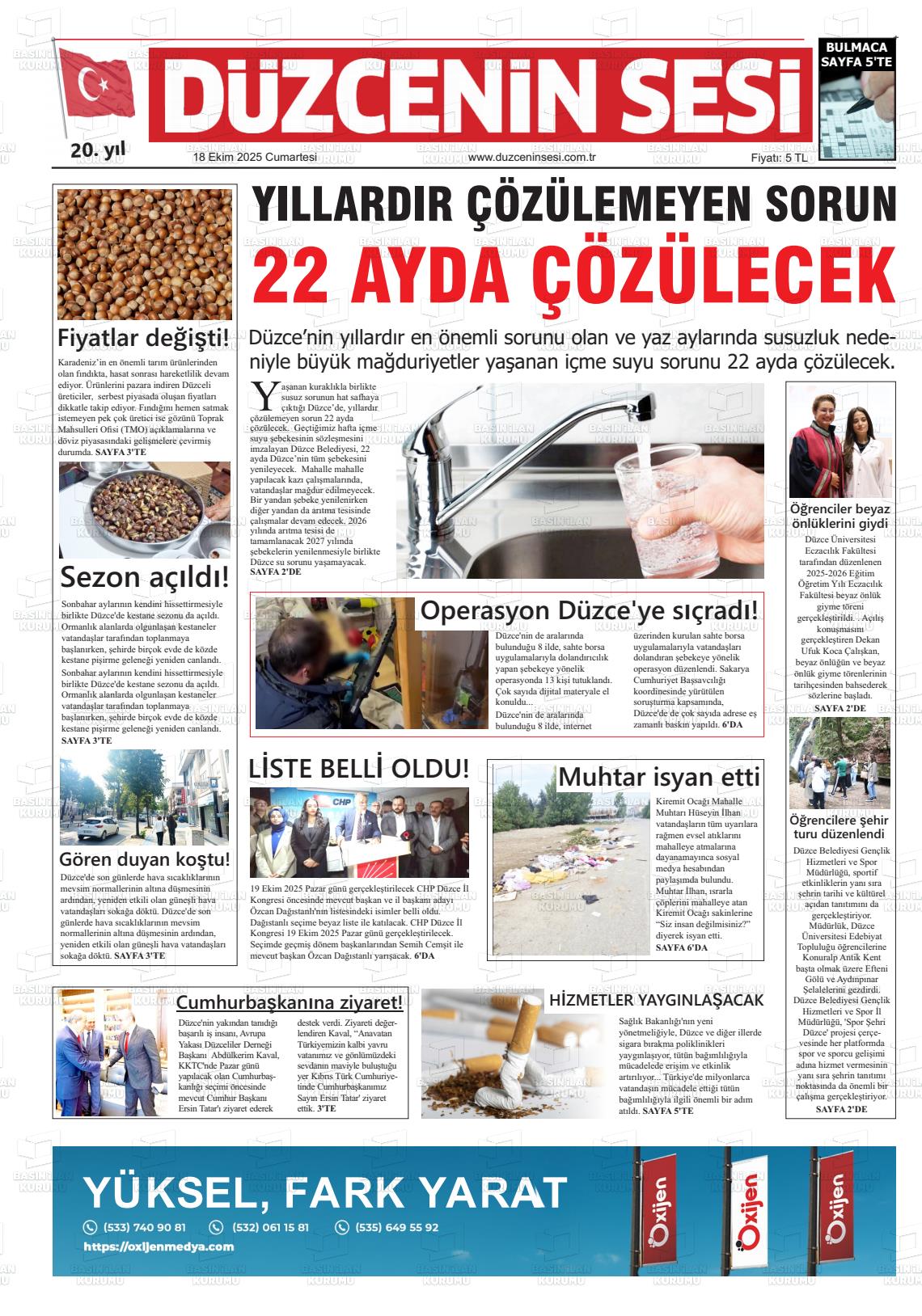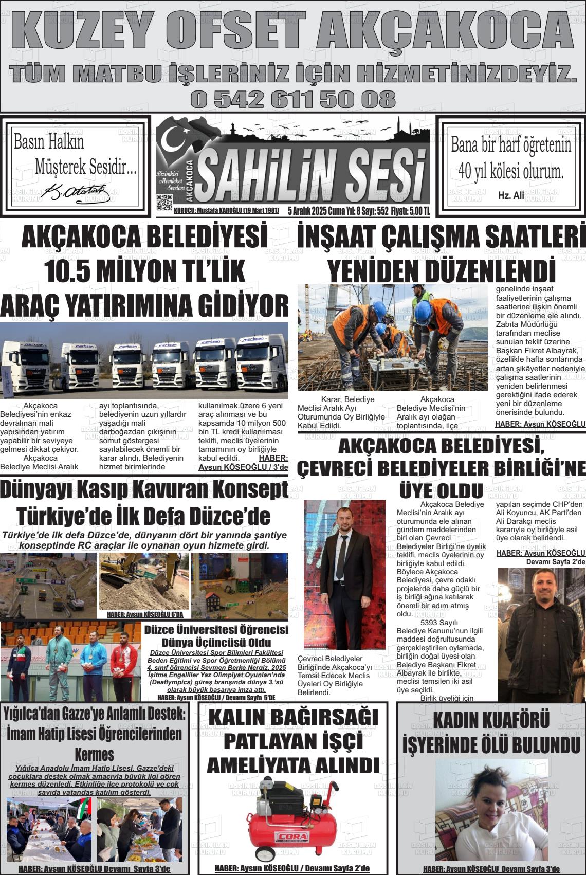 Düzce Yerel Gazeteleri 06 Şubat 2026, Cuma Günü Manşeti