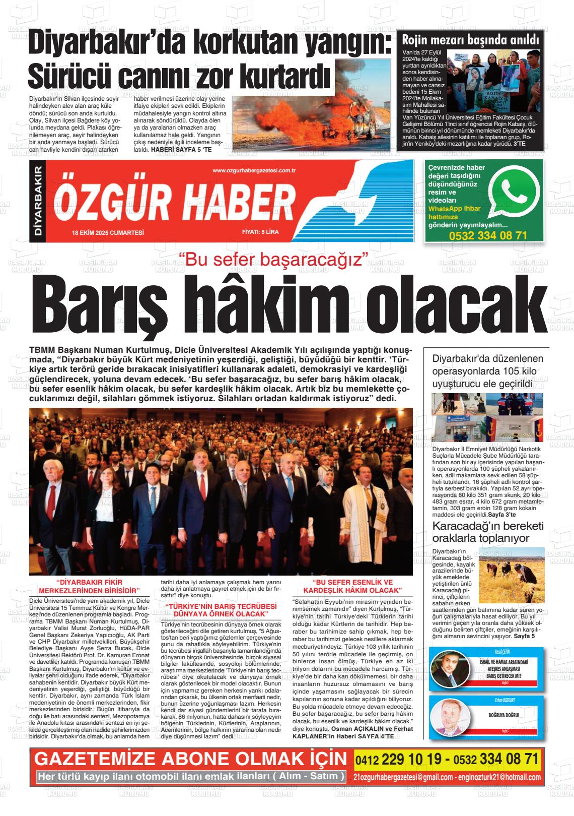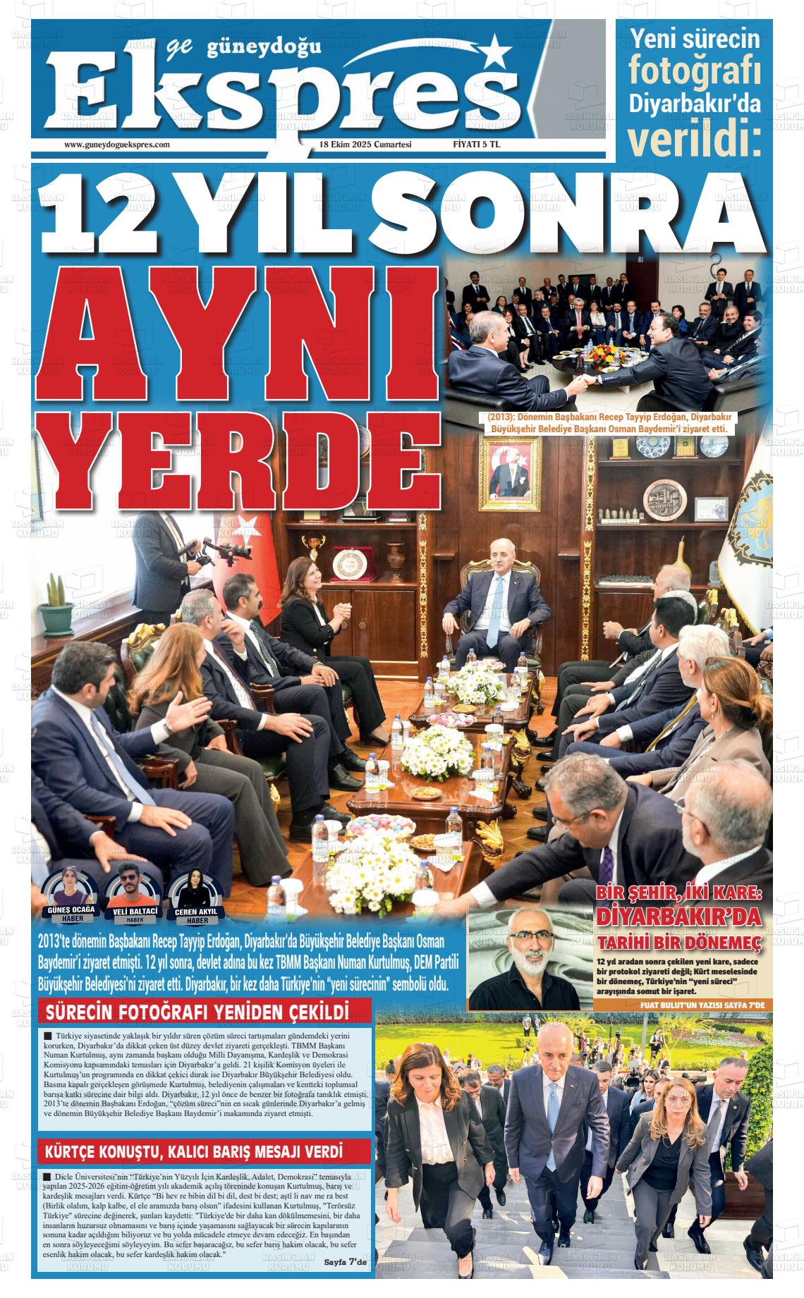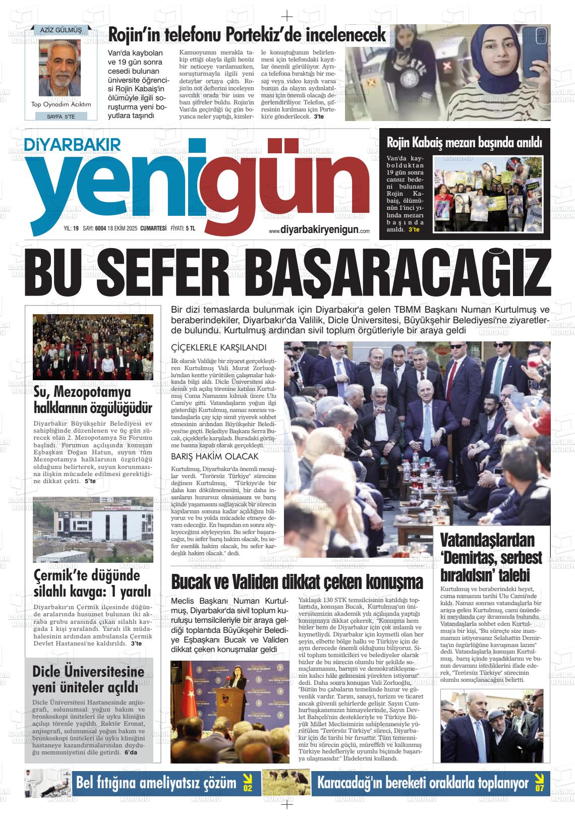 Dİyarbakır Yerel Gazeteleri 05 Şubat 2026, Perşembe Günü Manşeti