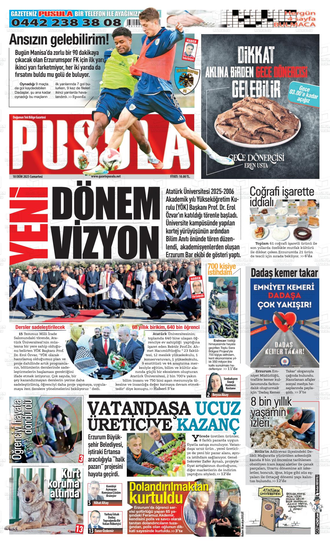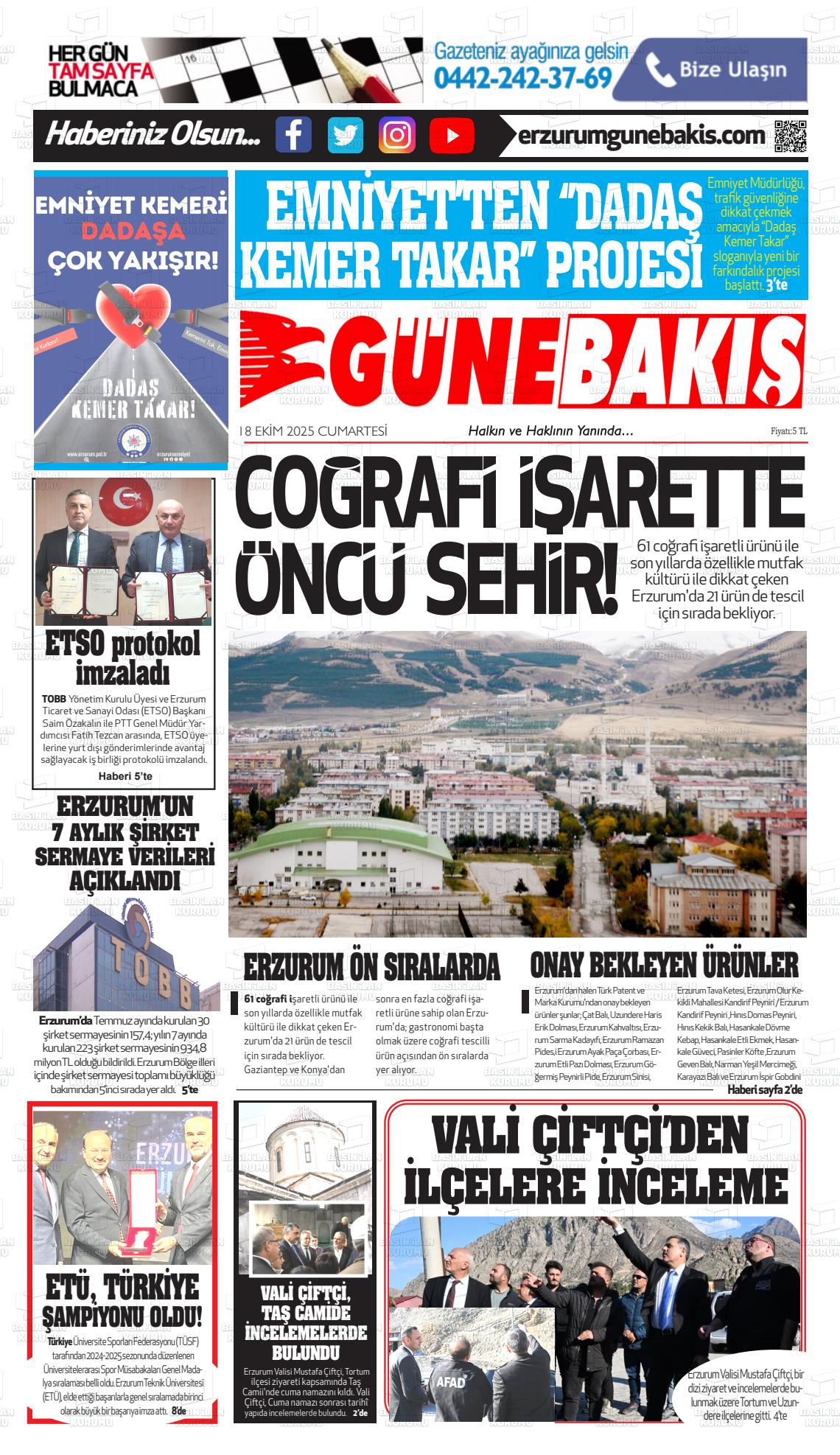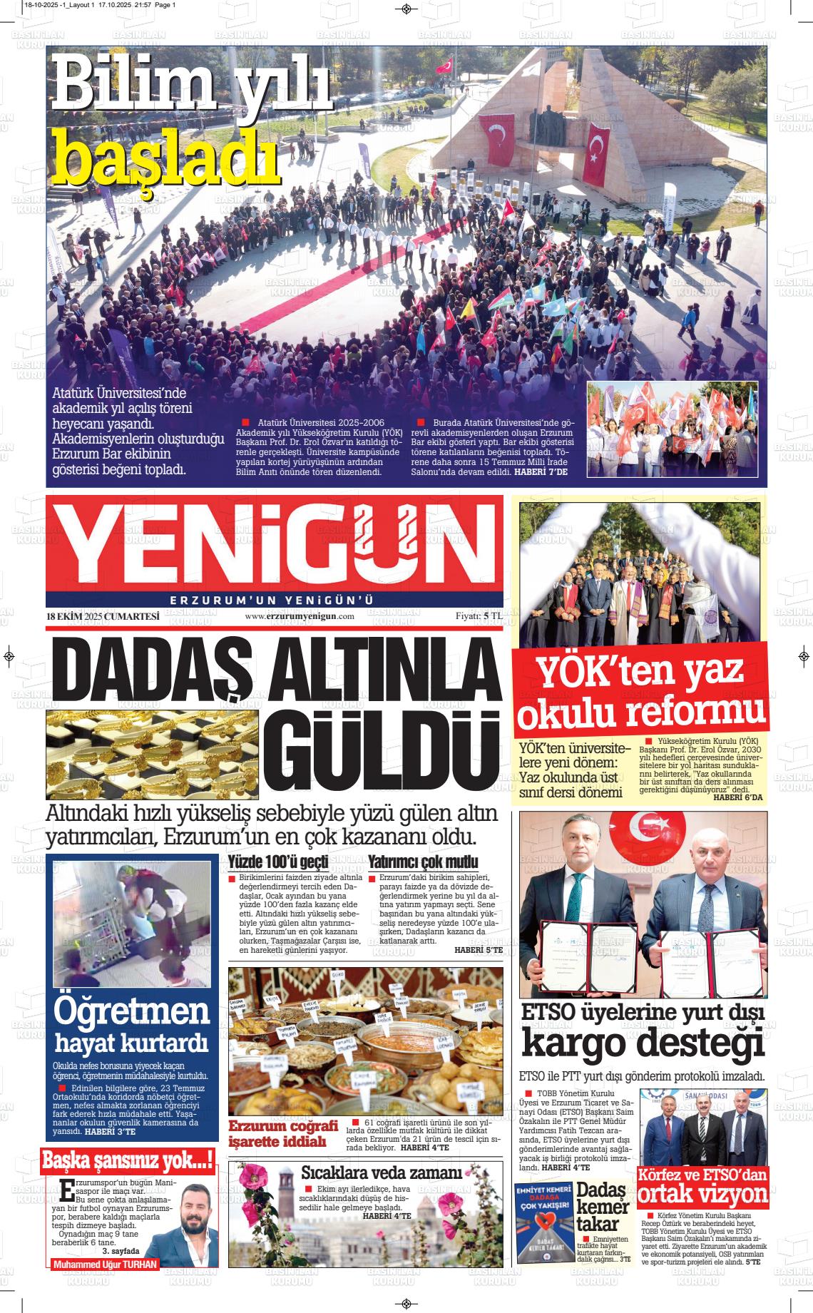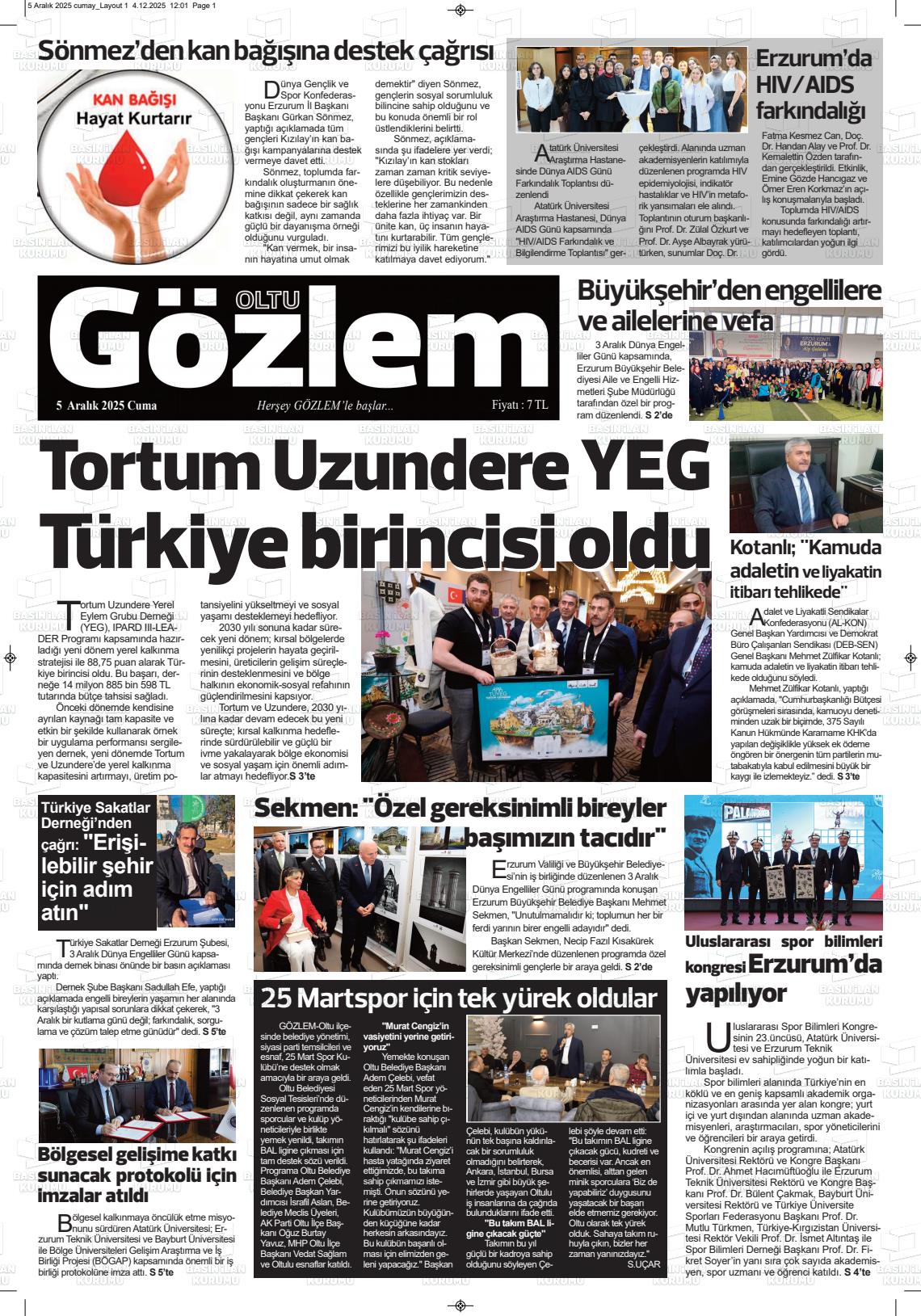 Erzurum Yerel Gazeteleri 06 Şubat 2026, Cuma Günü Manşeti