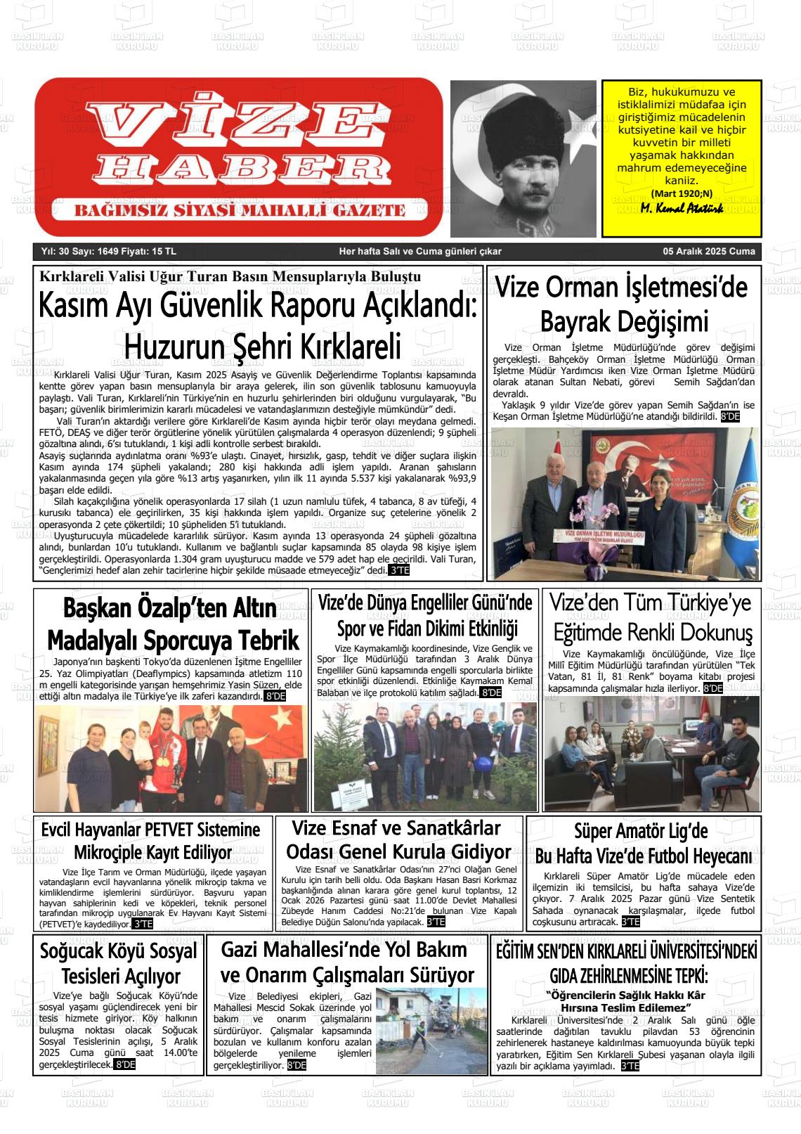 Kırklarelİ Yerel Gazeteleri 05 Aralık 2025, Cuma Günü Manşeti