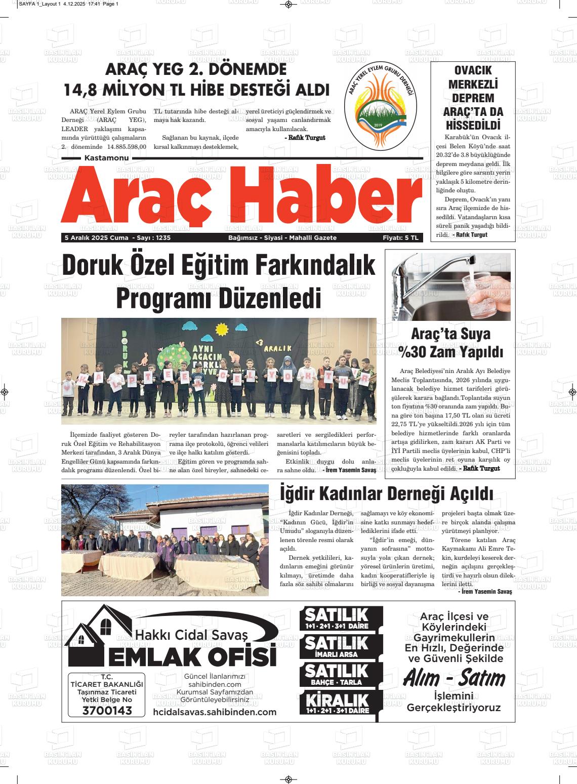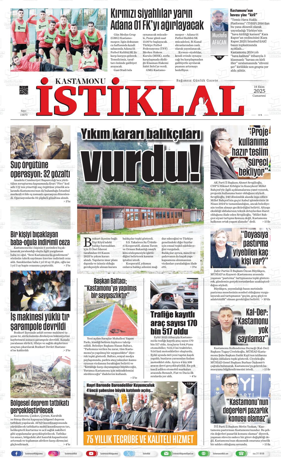 Kastamonu Yerel Gazeteleri 05 Şubat 2026, Perşembe Günü Manşeti