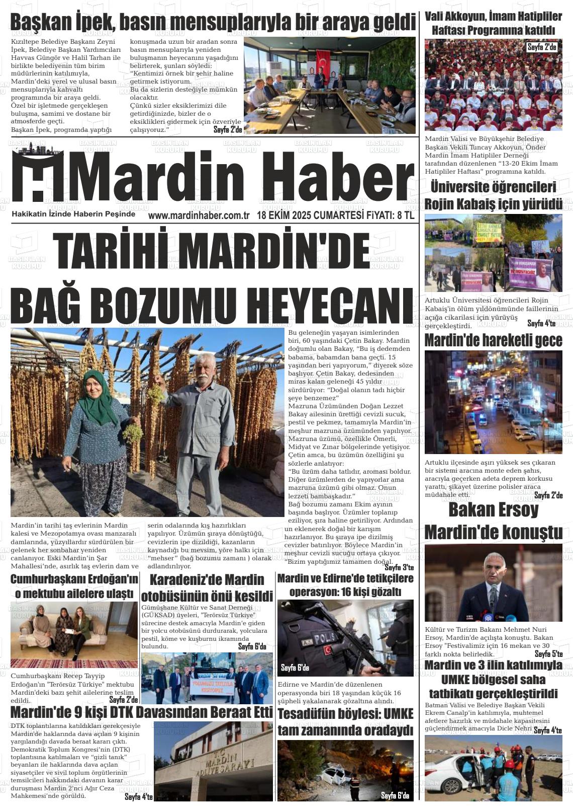 Mardİn Yerel Gazeteleri 06 Şubat 2026, Cuma Günü Manşeti