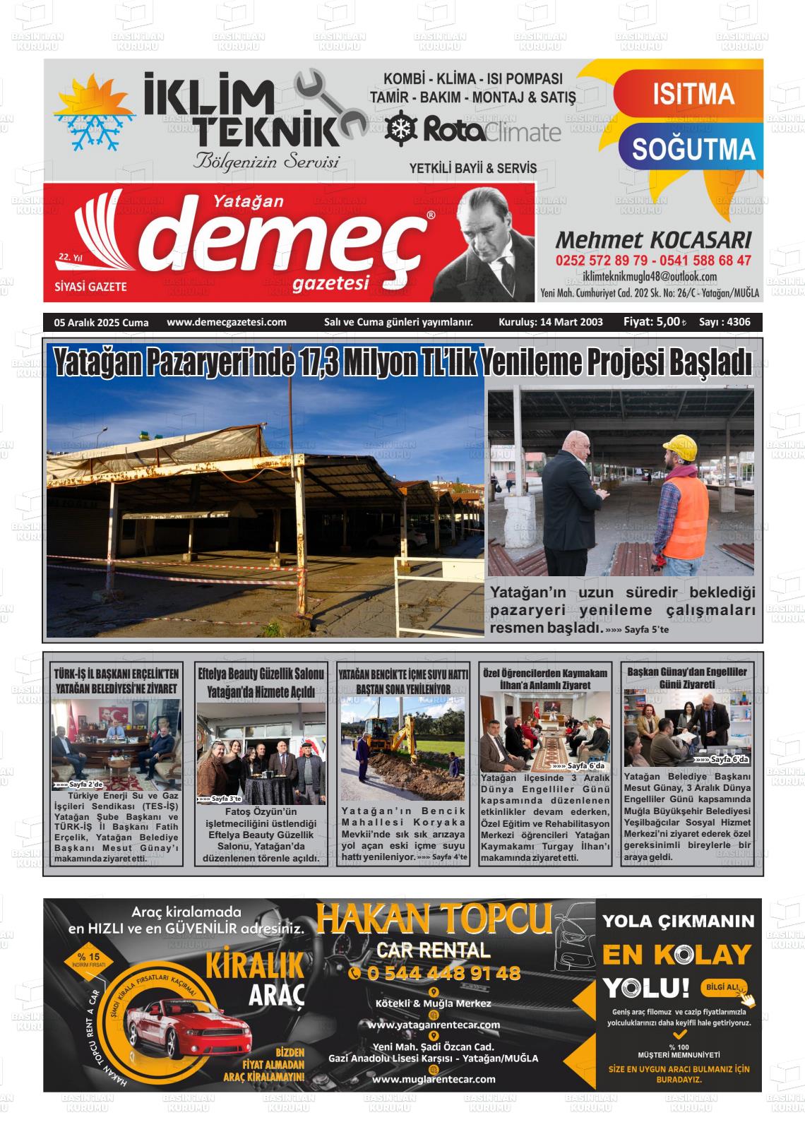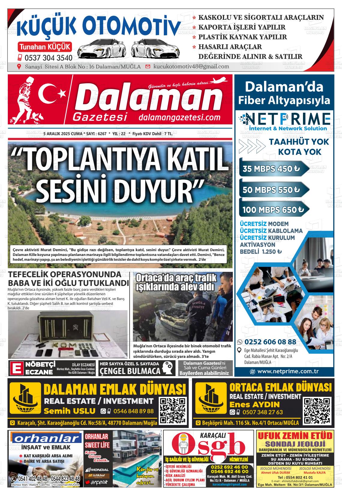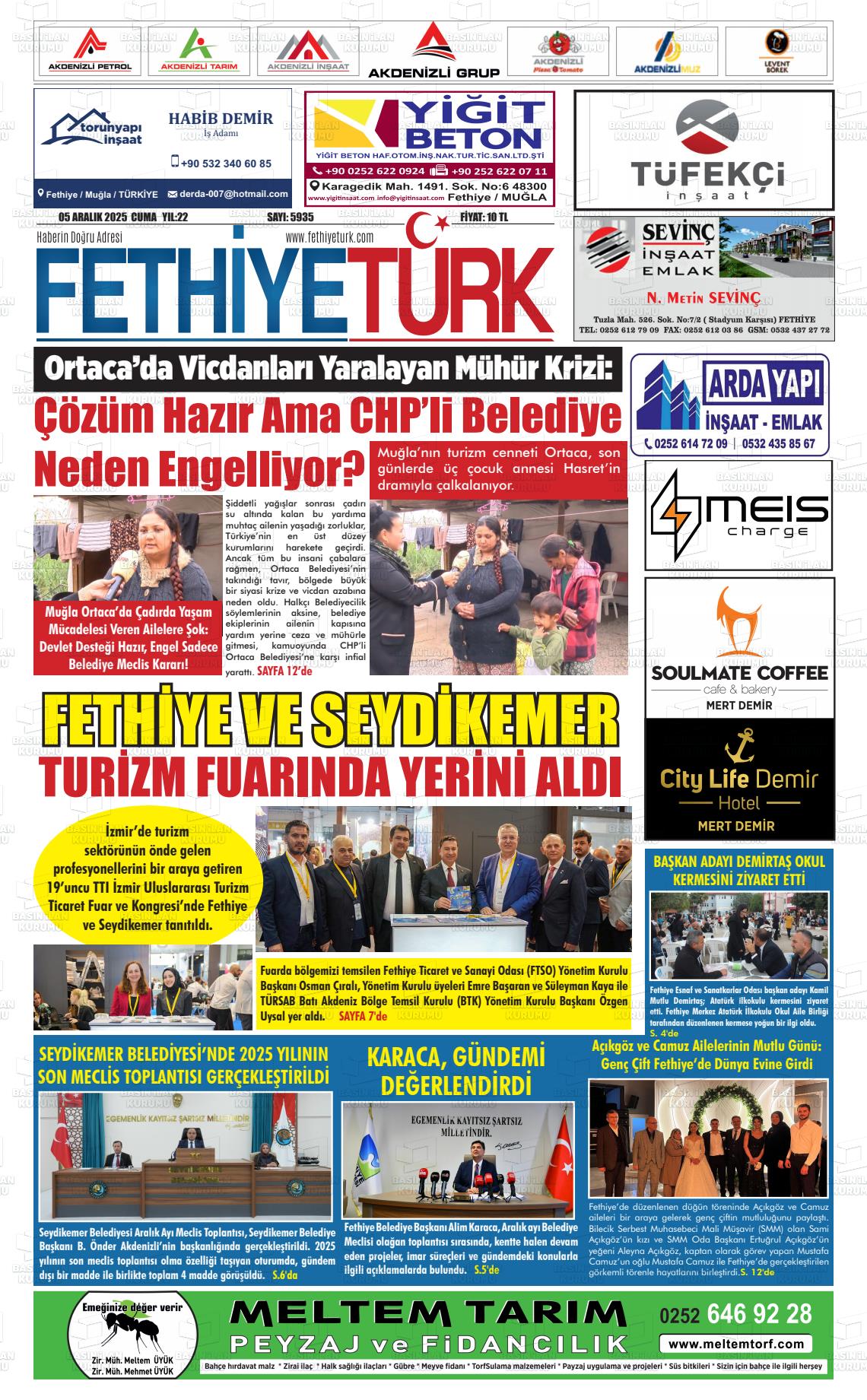 Muğla Yerel Gazeteleri 05 Aralık 2025, Cuma Günü Manşeti