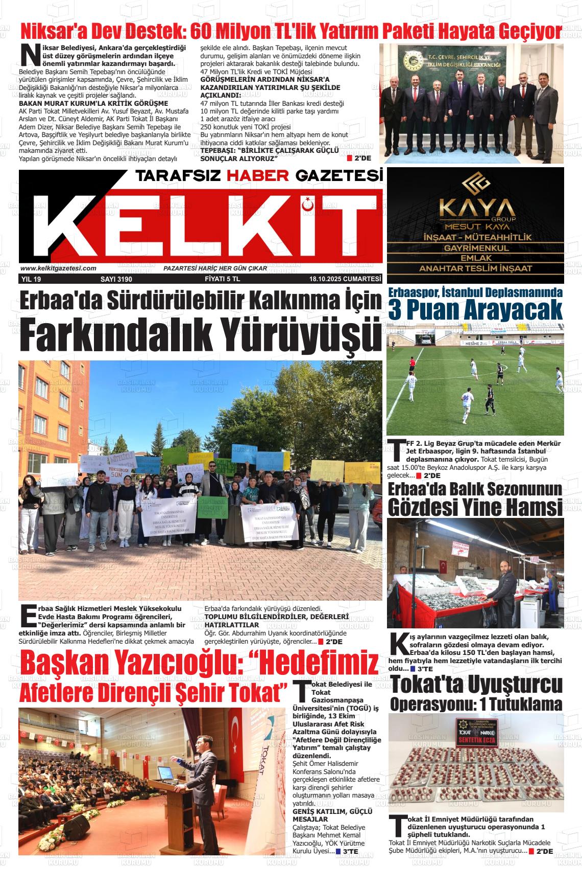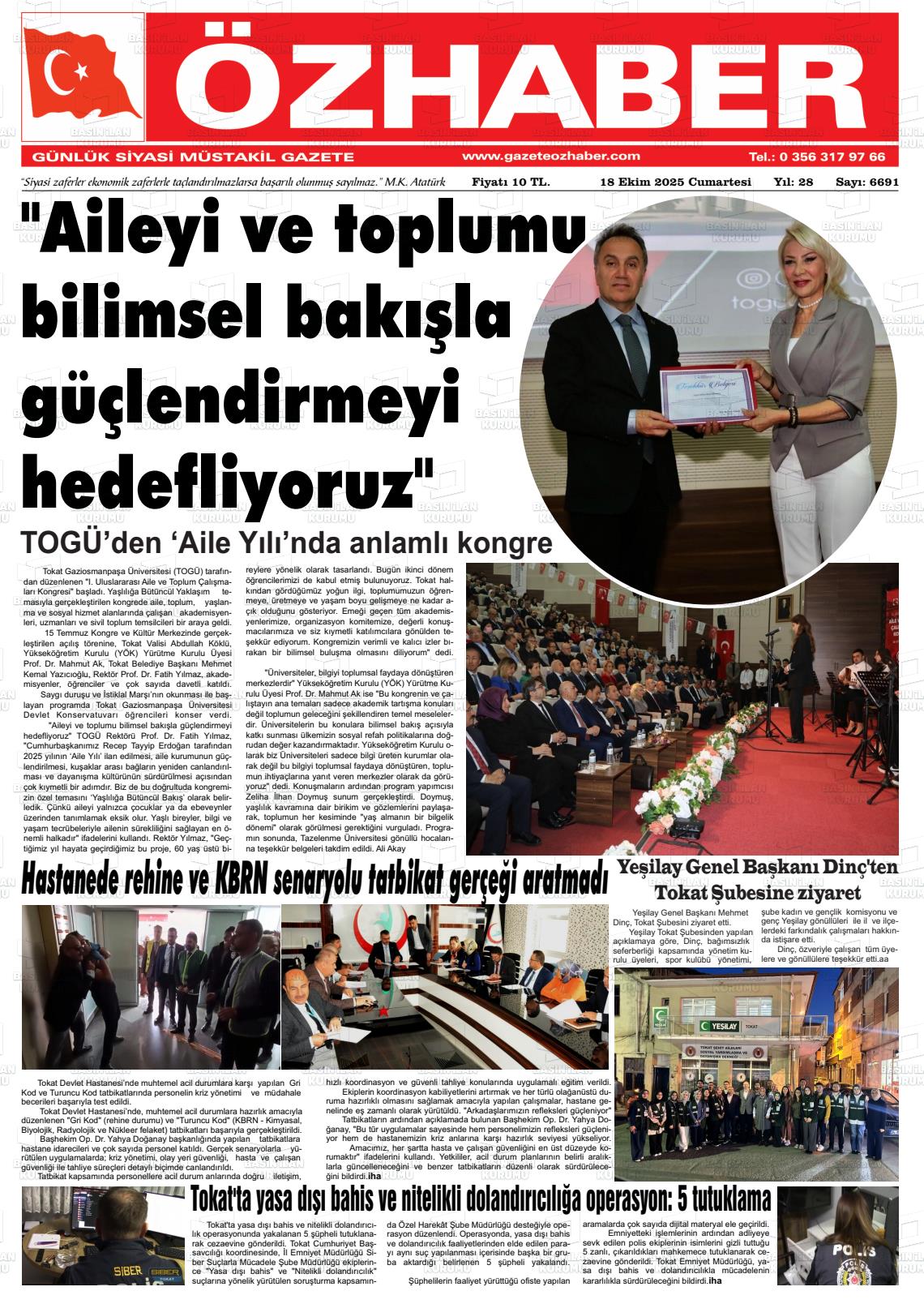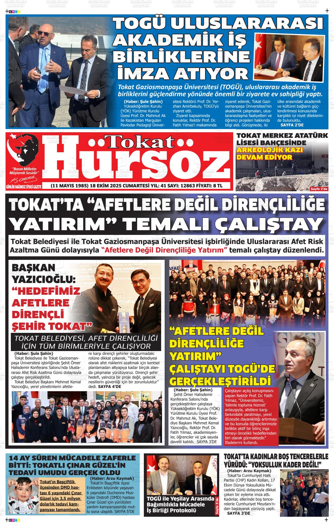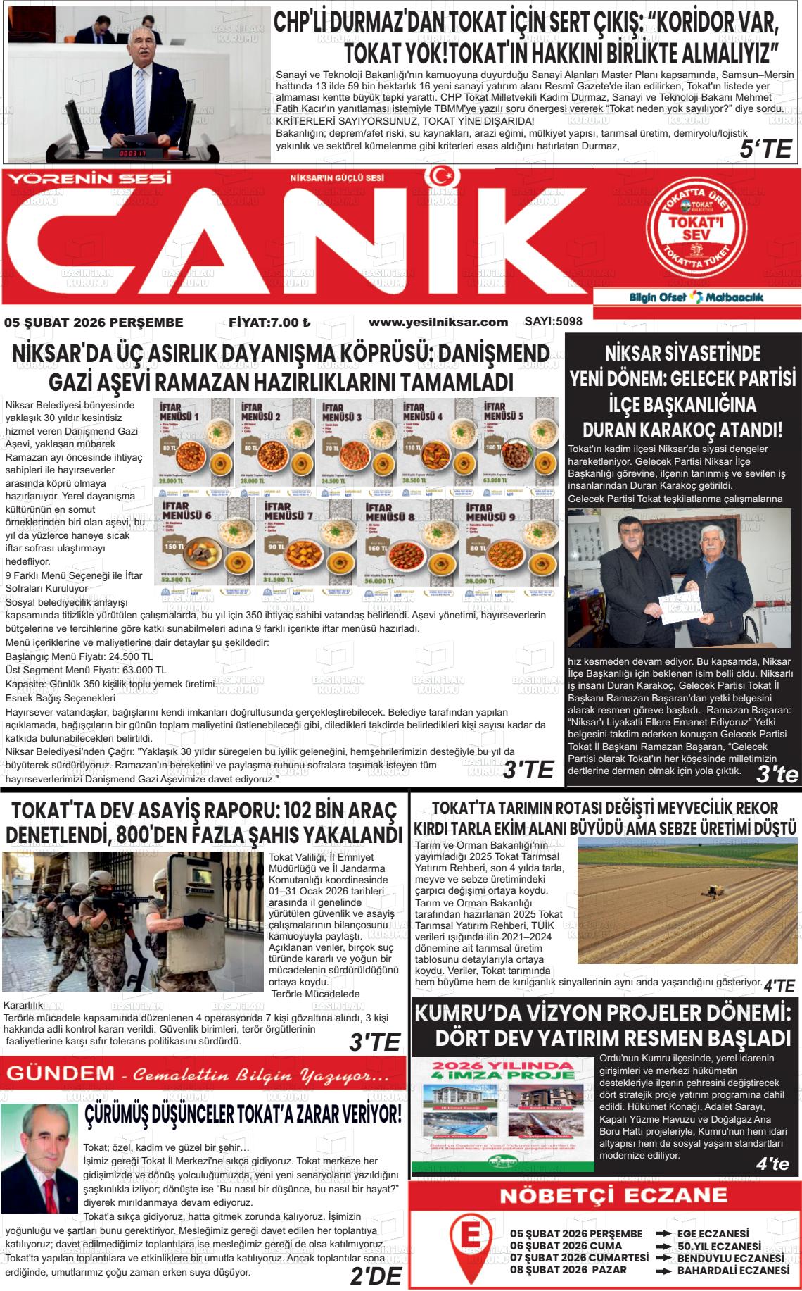 Tokat Yerel Gazeteleri 05 Şubat 2026, Perşembe Günü Manşeti