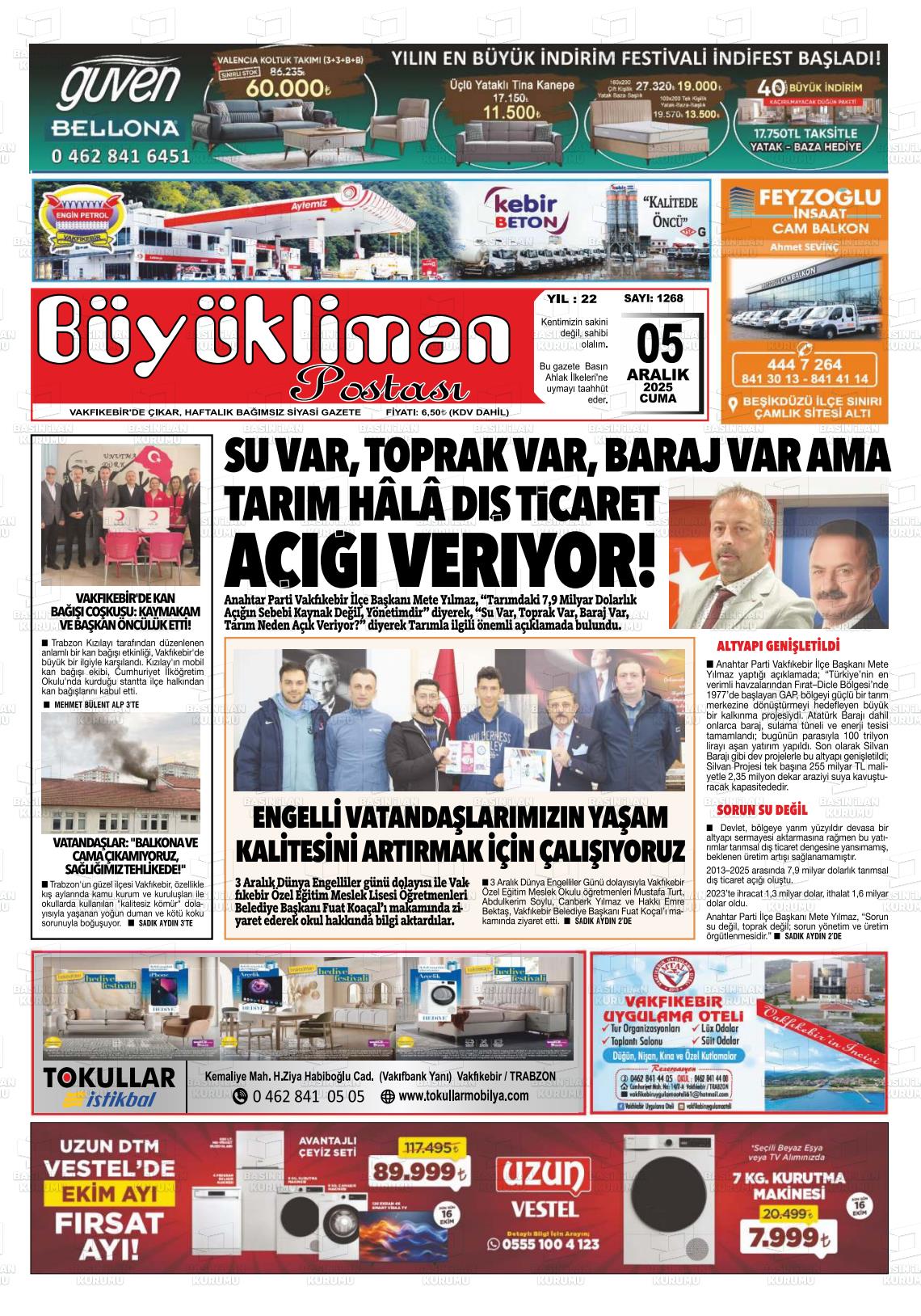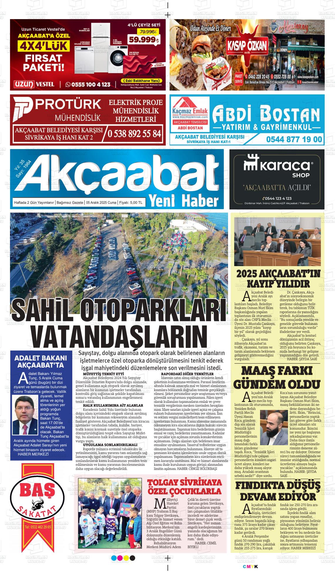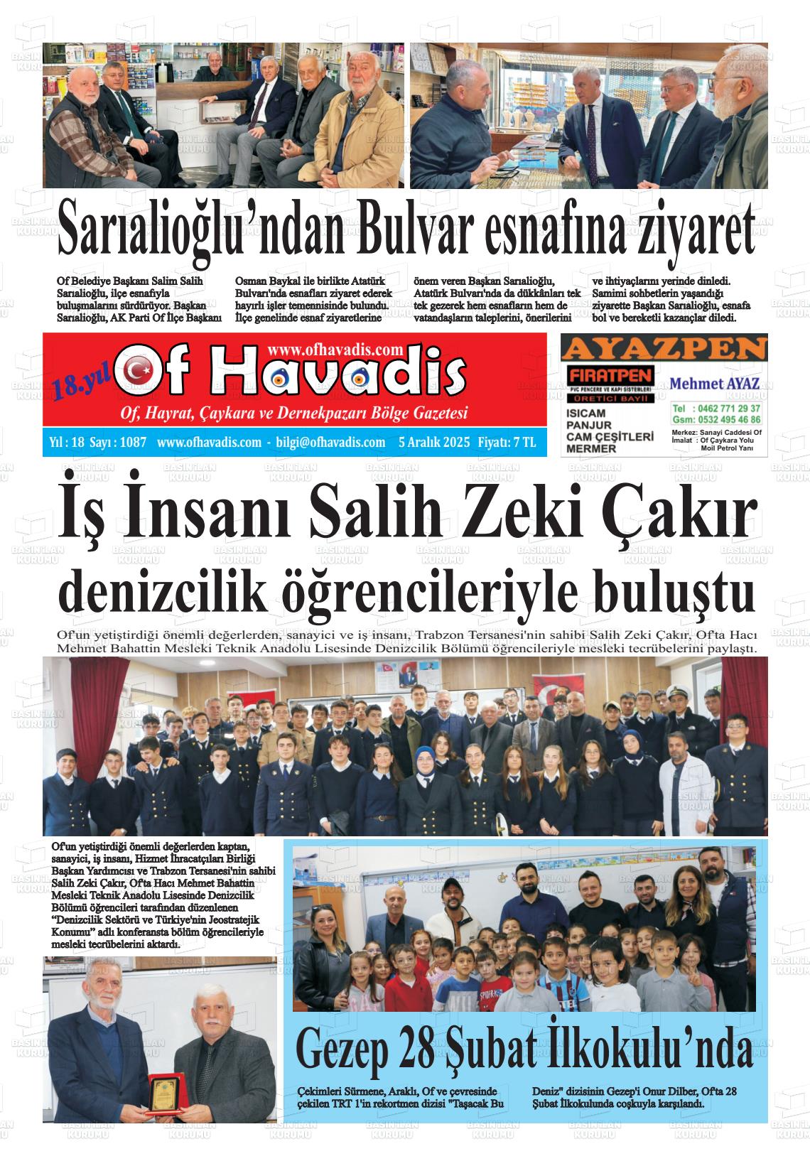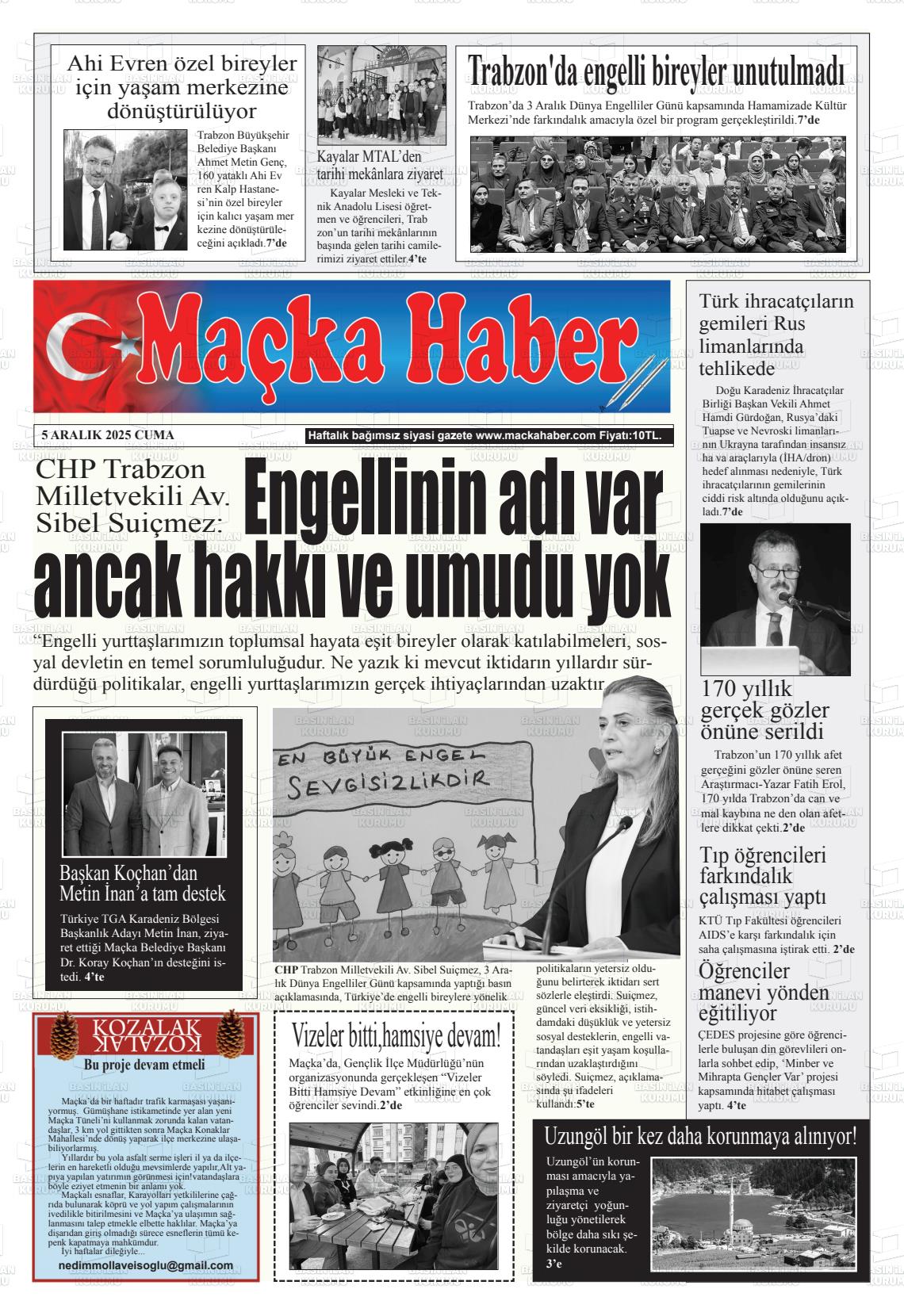 Trabzon Yerel Gazeteleri 05 Aralık 2025, Cuma Günü Manşeti